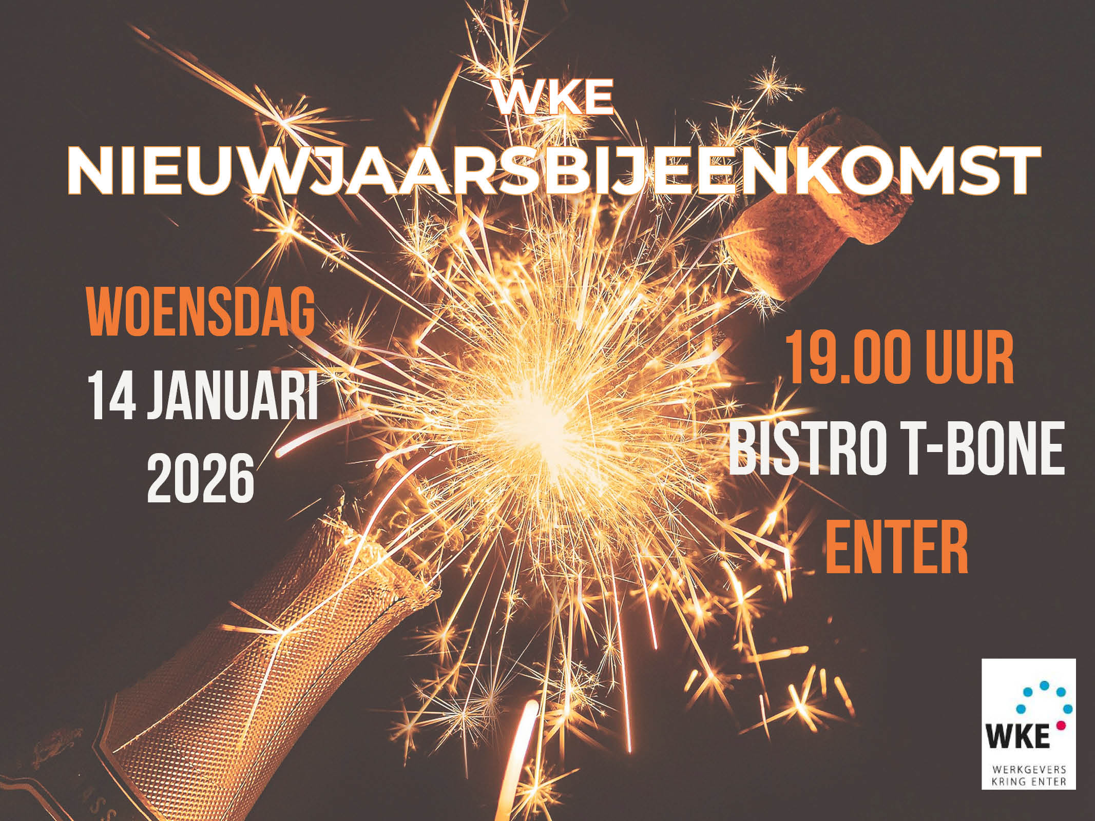 Het bestuur van de WKE nodigt u en uw partner van harte uit voor de Nieuwjaarsbijeenkomst van de Werkgeverskring Enter op woensdag 14 januari 2026 bij Bistro T-Bone in Enter